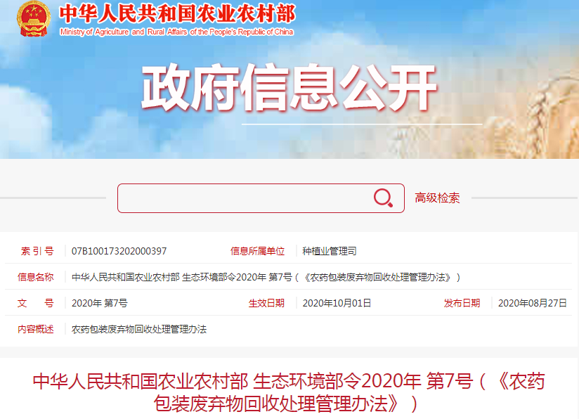 第六條農(nóng)藥生產(chǎn)者(含向中國出口農(nóng)藥的企業(yè))、經(jīng)營者和使用者應(yīng)當積極履行農(nóng)藥包裝廢棄物回收處理義務(wù),及時回收農(nóng)藥包裝廢棄物并進行處理。